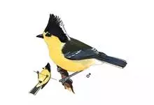 冕雀:共有4个亚种。体长20-21厘米,体重34-49克。具蓬松的黄色长型冠羽。雌鸟似雄鸟,但喉及胸深橄榄黄色,上体沾橄榄色。不会被误认的体大的黄色及黑色山雀。混群栖于原始林及次生林的林冠层,…全部>>