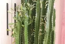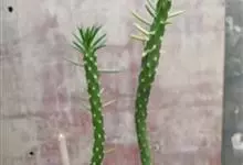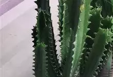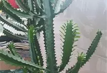 霸王鞭,是大戟科大戟属的多年生肉质灌木,全株含白色乳汁;茎直立,茎基部圆柱形,上部4~5纵棱,边缘波状,外面深绿色;叶互生,上部叶密集,近于簇生,具短柄,其基部有利刺1对;叶片披针形,先端圆,…全部>>