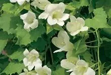 紫斑风铃草是桔梗科风铃草属植物,全体被刚毛,具细长而横走的根状茎。茎直立,粗壮。基生叶心状卵形;茎生叶三角状卵形至披针形。花顶生于主茎及分枝顶端,下垂;花萼裂片长三角形;花冠白色,带紫斑,筒状钟形。…全部>>