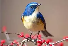 红胁蓝尾鸲俗名:蓝点冈子、蓝尾巴根子、蓝尾杰、蓝尾欧鸲。体型略小而喉白的鸲。特征为橘黄色两胁与白色腹部及臀成对比。雄鸟上体蓝色,眉纹白;亚成鸟及雌鸟褐色,尾蓝。…全部>>