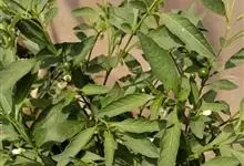 龙葵,茄科茄属一年生草本植物,茎近无毛或被微柔毛,叶互生,卵形或卵状椭圆形,叶常无毛;花小且下垂,花冠白色或淡紫色;浆果为球形,熟时黑紫色,有光泽;种子多数,卵形芝麻状,黄色;花期6-9月,…全部>>