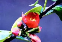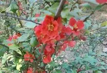 贴梗海棠Nakai)是蔷薇科、木瓜海棠属植物。落叶灌木,高达2米,枝条直立开展,有刺。叶片卵形至椭圆形,稀长椭圆形,长3-9厘米,宽1.5-5厘米。花先叶开放,3-5朵簇生于二年生老枝上。…全部>>