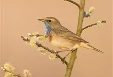 蓝点颏亦称“蓝喉歌鸲”,通称蓝靛颏儿。身体大小和麻雀相似,体长12-13厘米,体重17-18克。头部、上体主要为土褐色。眉纹白色。尾羽黑褐色,基部栗红色。颏部、喉部辉蓝色,下面有黑色横纹。下体白色。…全部>>
