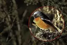 燕雀属小型鸟类,体长14-17厘米。嘴粗壮而尖,呈圆锥状。雄鸟从头至背辉黑色,背具黄褐色羽缘。腰白色,颏、喉、胸橙黄色,腹至尾下覆羽白色,两胁淡棕色而具黑色斑点。两翅和尾黑色,翅上具白斑。…全部>>