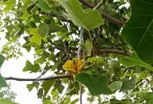 鹅掌楸 Sarg.),别名马褂木、宝剑木、九层皮,为木兰科鹅掌楸属落叶大乔木。小枝灰色或灰褐色;叶马褂状,叶柄长4-8cm;花杯状,浅黄色;果实为聚合果,顶端钝或钝尖;花期5月,果期9~10月。…全部>>