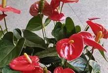 花烛,别名红鹅掌、红掌、安祖花等,为天南星科花烛属的一种多年生草本植物。其茎矮;叶互生,叶片革质,有光泽,阔心形、圆心形,先端钝或渐尖,基部深心形;肉穗花序有细长花序梗,佛焰苞深红色或橘红色,…全部>>