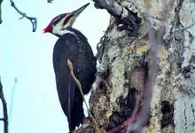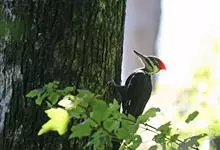 北美黑啄木鸟,Dryocopus pileatus ,啄木鸟科黑啄木鸟属的一种鸟类。身长约42厘米,体羽黑色,颈部有白色条纹,羽冠鲜红色,时常竖起。分布于北美地区,包括美国、加拿大、格陵兰、百慕大群…全部>>