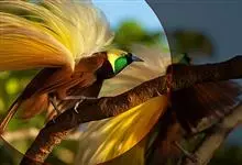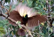 大极乐鸟是极乐鸟属中最大的鸟种。成年雄鸟体长可达到43厘米,雌性可达35厘米。雄鸟的额、颊、喉等墨绿色;头、颈黄色;上体暗赤栗色;腹部葡萄红色,胁部有长饰羽,其基部橙黄,中部黄色,…全部>>