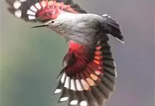 红翅旋壁雀:体重15-23克,体长120-178毫米。是一种体型略小的鸟类。尾短而嘴长,翼具醒目的绯红色斑纹。飞羽黑色,外侧尾羽羽端白色显著,初级飞羽两排白色点斑飞行时成带状。繁殖期雄鸟脸及喉黑色,…全部>>