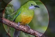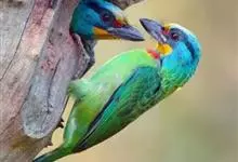 绿拟啄木鸟为鴷形目,须科,拟啄木属的一种。形较大拟啄木鸟略小,体长约260mm。头、颈及胸浅褐而具淡黄白色条纹;喉几为淡黄白色;身体余部草绿色。虹膜棕褐色,眼周裸露部黄色;嘴峰角黄色;跗跖和趾角黄…全部>>