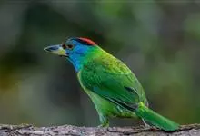绿拟啄木鸟为鴷形目,须科,拟啄木属的一种。形较大拟啄木鸟略小,体长约260mm。头、颈及胸浅褐而具淡黄白色条纹;喉几为淡黄白色;身体余部草绿色。虹膜棕褐色,眼周裸露部黄色;嘴峰角黄色;跗跖和趾角黄…全部>>