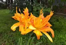 重瓣萱草 L. var. kwanso Regel),百合科萱草属植物。根近肉质,中下部有纺锤状膨大;花桔黄色,花被裂片多数,雌雄蕊发育不全。花被管较粗短,长2-3厘米;内花被裂片宽2-3厘米。…全部>>