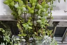 玉米石是景天科、景天属植物。多年生草本多浆植物。植株低矮丛生,多分枝。叶膨大成圆筒形、卵形或近小球形,互生至簇生,长0.6-1.2厘米,宽0.4-0.7厘米,叶端钝圆,亮绿色,肉质,硝带红晕,…全部>>