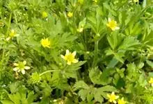 毛茛是毛茛科、毛茛属多年生草本植物。毛茛根茎短;茎中空,下部及叶柄被开展糙毛;基生叶数枚,心状五角形,中裂片楔状菱形或菱形,具不等牙齿,侧裂片斜扇形,茎生叶渐小;花序顶生,卵形;瘦果扁,斜宽倒卵圆形,…全部>>