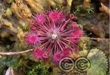茅膏菜茅膏菜科茅膏菜属多年生草本植物,高32厘米。鳞茎状球茎紫色地上常直无毛,茎顶多分枝;基生叶密集成近一轮,叶片半月形;聚伞花序生于枝顶,白色或红色,种子椭圆形;花果期6-9月。茅膏菜为变种,…全部>>