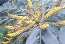 十大功劳 Fedde),小檗科十大功劳属常绿灌木植物。叶子较大且较多,呈椭圆形,绿色,表面光滑无毛,叶柄较长;花朵较小,呈多边形,黄色,花瓣对称分布,表面有绒毛;果实呈圆形,褐色,…全部>>