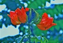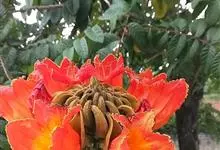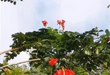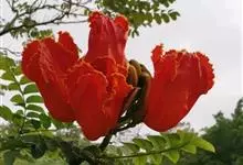 火焰树是紫葳科、火焰树属乔木,树皮平滑,灰褐色。奇数羽状复叶,对生,连叶柄长达45厘米;小叶13-17枚,叶片椭圆形至倒卵形,伞房状总状花序,顶生,密集;被褐色微柔毛,具有明显的皮孔;花冠一侧膨大,…全部>>
