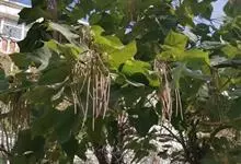 黄金树 Engelm.)是紫葳科梓属的乔木,高可达6-10米。树冠伞状;叶卵心形至卵状长圆形,顶端长渐尖,基部截形至浅心形;圆锥花序顶生,有少数花,花萼舟状,无毛,花冠日色,裂片开展;蒴果圆柱形,…全部>>