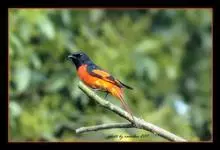 灰喉山椒鸟:共有8个亚种。体长18-22厘米。雄鸟头部和背亮黑色,腰、尾上覆羽和下体朱红色,翅黑色具一大一小的两道朱红色翼斑。中央尾羽黑色,外侧尾羽基部黑色,端部红色。…全部>>