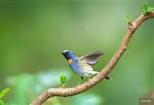 棕胸蓝姬鹟:属小型鸣禽,体长10-13厘米,体重6-10克,是一种体型很小的灰蓝及棕色鹟,雌雄羽色不同,雄鸟羽色艳丽,雌鸟羽色暗淡。雄鸟上体深蓝色,胸橙黄色,下腹灰白色。亚成鸟具褐色斑驳。…全部>>