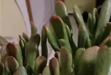 筒叶花月,是景天科青锁龙属的多年生草本植物。植株多分株,灌木状,茎较粗壮,圆柱形,表皮灰褐色;叶片肉质,互生,呈圆筒状,簇生于茎或分枝顶端,叶端呈斜截形,截面为椭圆形;花呈星状,淡白色;花期秋季。…全部>>
