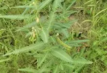 合萌,别名田皂角、水松柏、水槐子、水通草,中药名:梗通草。豆科一年生草本或亚灌木状植物,茎直立,叶对生,总状花序,腋生,花萼膜质,花冠淡黄色,子房扁平,线形。种子黑棕色,肾形,花果期7~10月。…全部>>