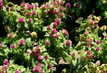 千日红,是苋科千日红属的一年生直立草本植物;茎粗壮,有分枝,枝略成四棱形,有灰色糙毛,幼时更密,节部稍膨大;叶片纸质,长椭圆形或矩圆状倒卵形;花果期6-9月。花色艳丽有光泽,花干后而不凋,经久不变,…全部>>