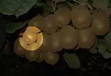 中华猕猴桃,是猕猴桃科猕猴桃属的多年生木本植物,幼枝有白色绒毛;叶纸质,呈倒阔卵形;聚伞花序,花片小,卵形;果黄褐色,球形或倒卵形;花期4-5月;果期8-10月。“猕猴桃”最早由李时珍命名:“其形如梨,…全部>>