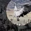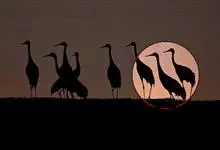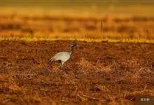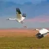 蓑羽鹤大型涉禽,体长68~92厘米,是鹤类中个体最小者。通体蓝灰色,眼先、头侧、喉和前颈黑色,眼后有一白色耳簇羽极为醒目。前颈黑色羽延长,悬垂于胸部。脚黑色,飞翔时翅尖黑色。…全部>>