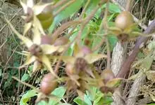 金樱子为常绿攀援灌木,高可达5米。小枝粗壮,散生扁弯皮刺,无毛,幼时被腺毛,老时逐渐脱落减少。小叶革质;小叶片边缘有锐锯齿;小叶柄和叶轴有皮刺和腺毛;托叶离生或基部与叶柄合生,边缘有细齿,齿尖有腺体。…全部>>