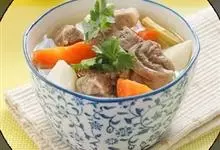 山药炖羊肉是一道菜品,由羊肉、山药和香菜三者搭配食用,做法简单,适宜于体虚胃寒、四肢冰冷、慢性哮喘、贫血以及阳气不足的人。全部>>