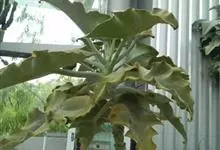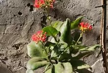 仙女之舞是景天科、伽蓝菜属植物。常绿肉质灌木,株高可达2-3米。幼株茎上有毛。叶有柄;单叶对生,阔卵状三角形,肉质;新叶开展,老叶正面凹、背面圆凸,缘具稀锯齿,橄榄绿色至灰绿色,被稠密的灰白色毛。…全部>>