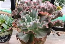 女王花笠,又名扇贝石莲花、女王花舞笠,是景天科拟石莲花属的多肉植物。由美国加利福尼亚州的育种师Dick Wright于1964年培育。特征是呈大波浪状褶皱的红色叶缘和气质高贵的粉紫色调。…全部>>