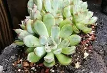 锦晃星是景天科、石莲花属多肉植物。多年生小灌木状多浆植物,灰绿色卵状倒披针形肥厚肉质叶轮状互生,全缘,椭圆尖头,长3-4厘米,宽2-2.5厘米,厚约1厘米,玲凉季节阳光下,叶端及上缘呈红色。…全部>>