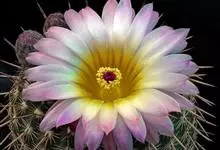 仙人球花 仙人掌科,仙人球属。植株单生或成丛。幼株球形,老株长成圆筒状,高可达75厘米,直径12-15厘米。球体暗绿色,具棱11-12。刺锥状,黑色,长1-1.5厘米。花着生于球体侧方,大型嗽喇叭状…全部>>