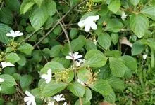 蝴蝶戏珠花 Miq.)是荚蒾科荚蒾属植物。落叶灌木,高达3米;当年小枝浅黄褐色。叶较狭,宽卵形或矩圆状卵形,有时椭圆状倒卵形。花序直径4-10厘米,外围有4-6朵白色、木型的不孕花。果实先红色后变黑色,…全部>>