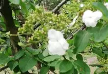 琼花是荚蒾科荚蒾属落叶或半常绿灌木植物,又名扬州琼花、蝴蝶木、八仙花、聚八仙、蝴蝶戏珠花、毛琼花。琼花高达4米;树皮灰褐色或灰白色。叶纸质,卵形至椭圆形或卵状矩圆形。聚伞花序,花冠白色,辐状。…全部>>
