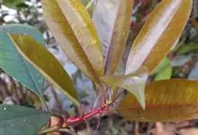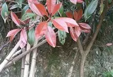 红叶石楠 是蔷薇科,石楠属杂交种,为常绿小乔木或灌木,乔木高可达5米、灌木高可达2米。叶片革质,长圆形至倒卵状、披针形,叶端渐尖,叶基楔形,叶缘有带腺的锯齿,花多而密,复伞房花序,花白色,梨果黄红色,…全部>>