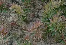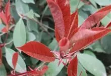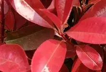 红叶石楠 是蔷薇科,石楠属杂交种,为常绿小乔木或灌木,乔木高可达5米、灌木高可达2米。叶片革质,长圆形至倒卵状、披针形,叶端渐尖,叶基楔形,叶缘有带腺的锯齿,花多而密,复伞房花序,花白色,梨果黄红色,…全部>>