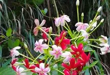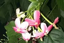 使君子 Jongkind)是使君子科、使君子属攀援灌木,叶对生,椭圆形,两面均被灰白色柔毛。穗状花序,倒挂下垂。花期夏秋。果有五棱,熟时黑色,种子白色。分布于印度、缅甸、菲律宾和中国。喜温润,深根性,…全部>>