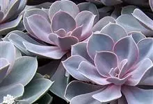 紫珍珠是景天科石莲花属的多年生肉质草本植物。植株中小型;叶片肉质,匙形,呈莲座状紧密排列;叶片粉紫色,叶缘呈粉白色,光照充足时颜色亮丽,不足时叶色会呈现深绿色或灰绿色,叶面光滑,被轻微白粉,…全部>>
