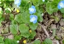 婆婆纳一年至二年生草本植物,有短柔毛。有蓝、白、粉三种颜色。茎自基部分枝,下部匍匐地面。三角状圆形或近圆形的叶子在茎下部对生,上部互生,边缘有圆齿。早春开紫红色小花,单生于苞腋。果期3-5月。喜光,…全部>>