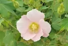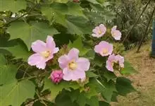 木芙蓉,锦葵科木槿属落叶灌木或小乔木。小枝上有细绒毛;叶片为卵状心形,托叶为披针形,常早落;花单生,花萼为钟形,花冠初为白色或淡红色,后逐渐变为深红色;果实为扁球形,有淡黄色的毛附着。花期8到10月。…全部>>