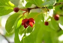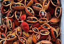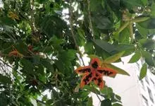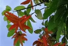 假苹婆是锦葵科苹婆属乔木植物。幼枝被毛;叶椭圆形或披针形,先端骤尖,基部钝或近圆无毛;圆锥花序腋生,花淡红色;蓇葖果鲜红色,长卵圆形或长椭圆形;种子卵圆形黑褐色;花期4-6月。…全部>>