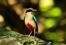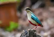 蓝翅八色鸫是雀形目八色鸫科的鸟类。体长17-20厘米,体重类约48-70克,体型圆胖,尾短,腿长,以身体具有红、绿、蓝、白、黑、黄、褐、栗等鲜艳夺目,丰富艳丽的色彩而得名,是很有观赏价值的鸟类。主要…全部>>