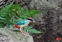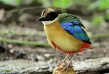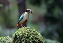 蓝翅八色鸫是雀形目八色鸫科的鸟类。体长17-20厘米,体重类约48-70克,体型圆胖,尾短,腿长,以身体具有红、绿、蓝、白、黑、黄、褐、栗等鲜艳夺目,丰富艳丽的色彩而得名,是很有观赏价值的鸟类。主要…全部>>