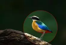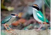 蓝翅八色鸫是雀形目八色鸫科的鸟类。体长17-20厘米,体重类约48-70克,体型圆胖,尾短,腿长,以身体具有红、绿、蓝、白、黑、黄、褐、栗等鲜艳夺目,丰富艳丽的色彩而得名,是很有观赏价值的鸟类。主要…全部>>