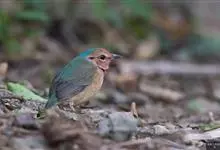栗头八色鸫又叫锅巴雀,体长为24-26厘米,体重100-135克,是雀形目八色鸫科的鸟类。体型圆胖,尾短,腿长,常在森林底层或低植被中找食无脊椎动物。叫声简单哀婉。…全部>>