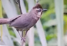 白颊噪鹛是雀形目噪鹛科噪鹛属鸟类,又称土画眉、小画眉、小噪鹃。成鸟额至头顶栗褐色,长眉纹、眼先和颊纹棕白色,眼后至耳羽深褐色,…全部>>