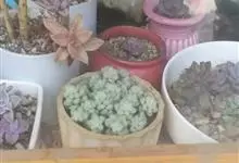 胧月 E.Walther)是景天科,风车草属多肉植物,常绿蔓生亚灌木,叶肥厚无柄,灰蓝色,阳光充足时呈粉红色,叶片枝顶簇生成莲座状,乳白色,花冠5裂,上有紫红色斑点,雄蕊两轮排列,花药鲜红色,…全部>>